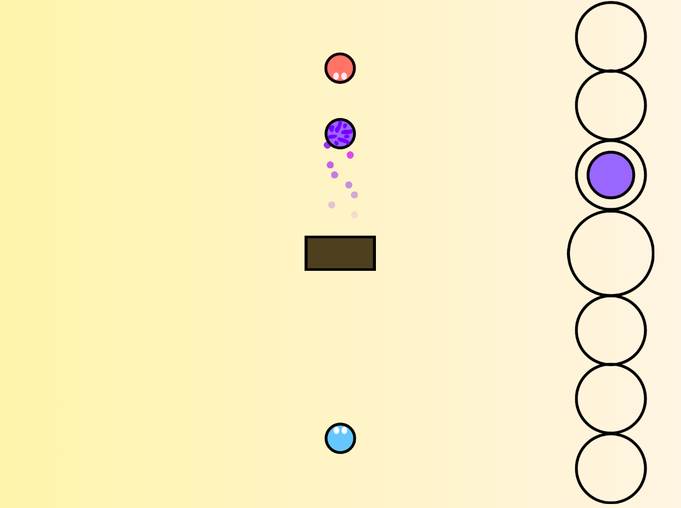 Press space or tap the screen to throw the ball. Try to get the ball in the brown basket in the center to earn a point. When you get a point the purple circle at the right will move up, you win if it moves all the way up, you lose if it goes all the way to the bottom.